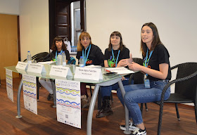 Ellas fueron las primeras, Educadoras Sociales, pertenecientes al colectivo EdusoBierzo, abriendo la Jornada y dando un toque de gran profesionalidad. Sonia Álvarez hablando de Educación Social en los Programas de Familia desde una entidad pública, Estefanía Rodríguez, lo hizo desde el ámbito de la Discapacidad y del tercer sector, por último Verónica Viéitez, nos expuso el campo de la Mediación como autónoma y emprendedora. Las intervenvenciones han estado moderadas por Tania López, también Educadora Social.